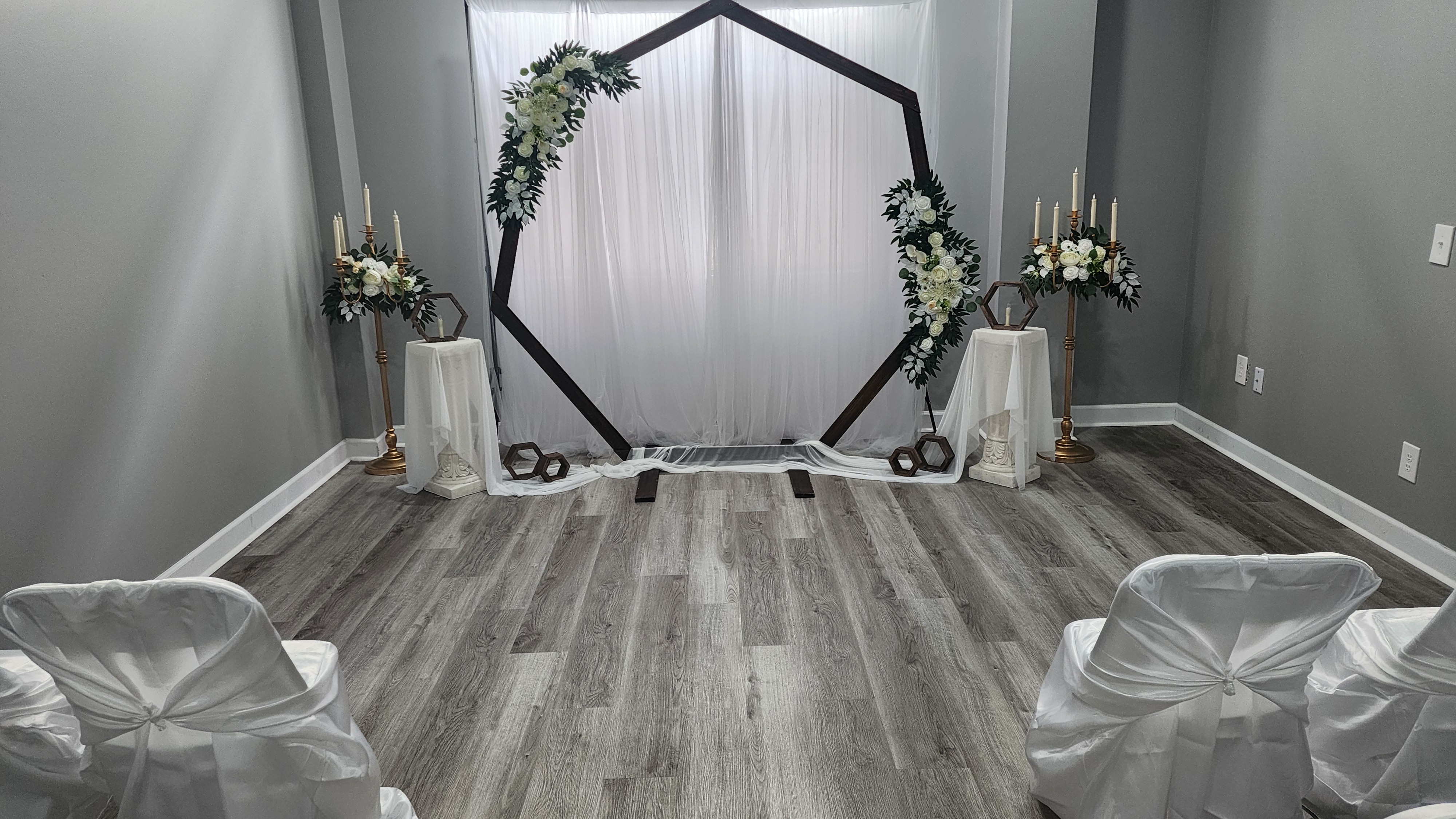If your in need of a location for just your wedding ceremony, then we have what you need. With our Intimate wedding chapel you can bring your own small radio for music and flowers or other decor as long as you remove it after the event. Our Intimate wedding chapel has seating for up to 20 guests. All religions welcome or those without any religion. Our wedding chapel's have no religious items and can be used by all.